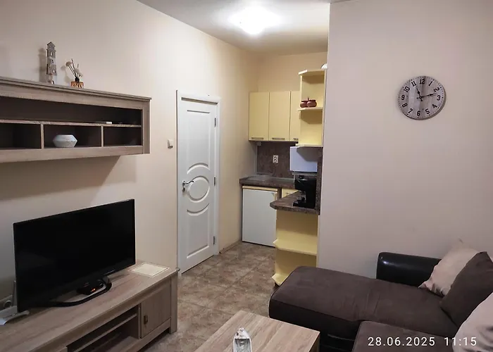 The 56 m² Blue Beach Apartments - Melia Ravda is located approximately 25 minutes' walk from Nesebar Stadium and offers Wi-Fi for either business or leisure. The nearest bus stop Evridika is 350 metres away, while the 5th - century Church of Saint Sophia is 3.9 km away.